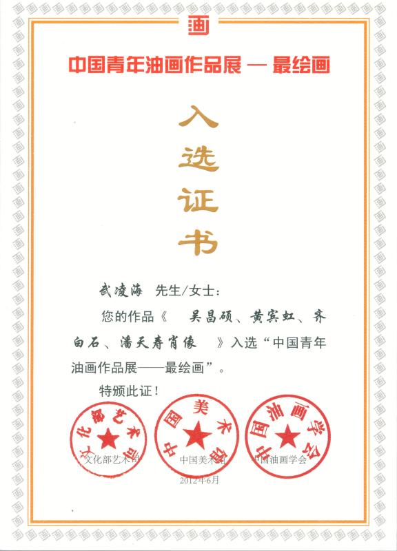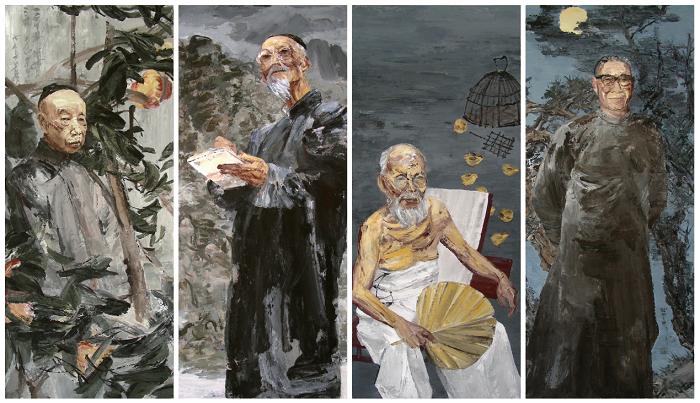 《吴昌硕、黄宾虹、齐白石、潘天寿肖像》参加2012年在中国美术馆举办的“最绘画——中国青年油画作品展”