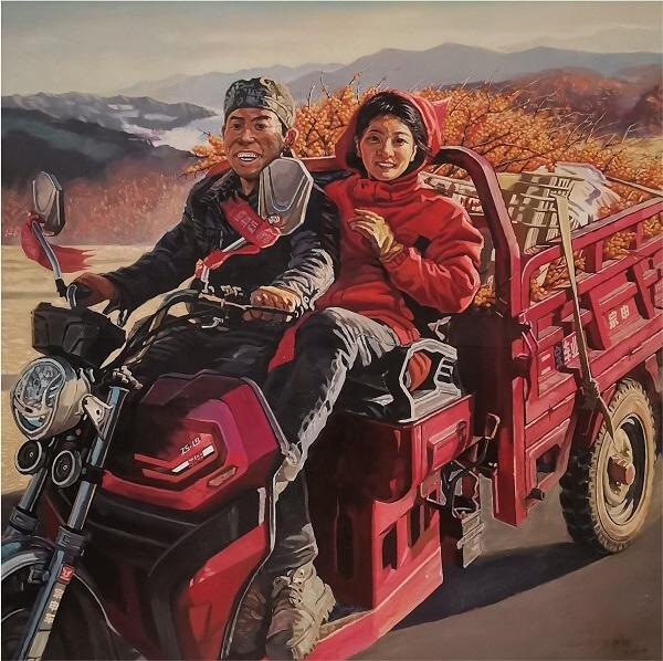 吕宇朝作品《小康路上》参加由中国油画学会主办的绚采晋辉——山西油画作品展及山西省第七届油画作品展