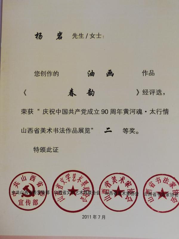 张彦伟作品《余香》参加山西省美协主办的山西中部(十县市)美术作品展,获优秀作品奖(最高奖)