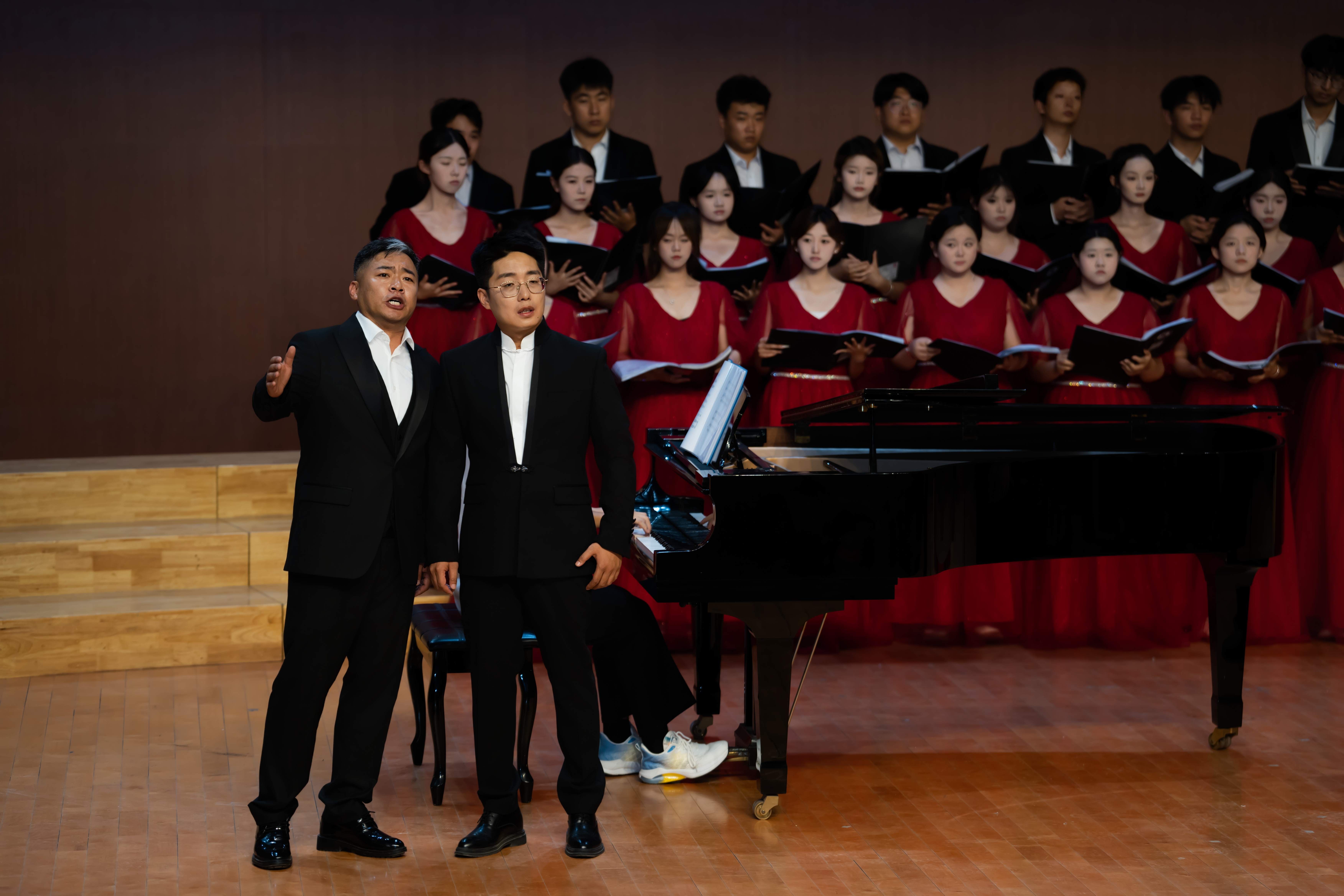 从《吕梁山大合唱》的铿锵有力,到《黄河大合唱》的激昂澎湃,一曲曲红色经典既展现了革命年代的壮志豪情,也传递着军爱民、民拥军的深厚情谊。音乐会现场掌声雷动,经典作品引发现场观众的强烈共鸣,让在场官兵与师生在红色旋律中接受精神洗礼。