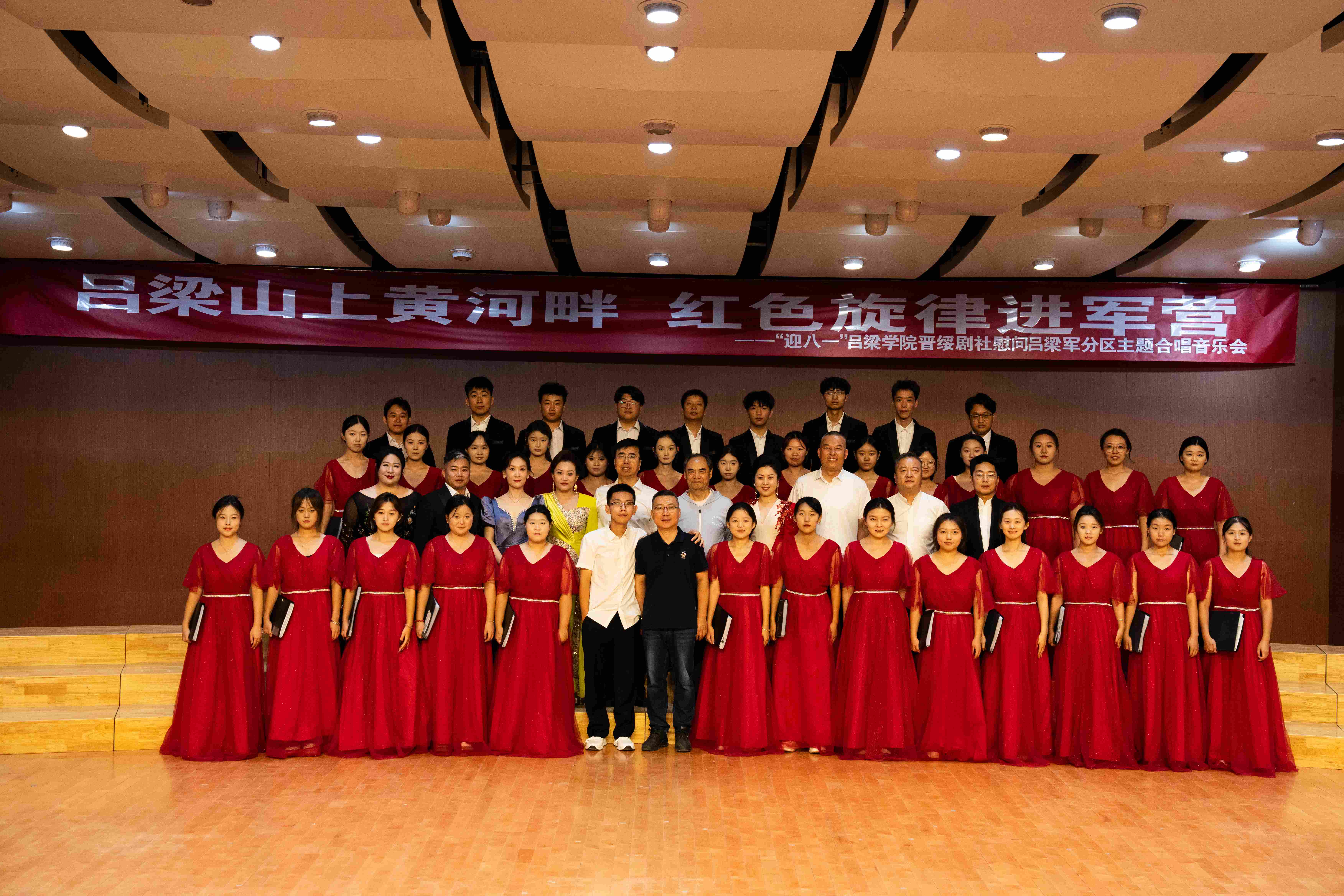 吕梁学院校领导、吕梁市军分区领导、艺术系领导及吕梁市军分区百余名官兵出席活动。音乐会由艺术系副主任薛佳瑜主持,艺术系多名声乐教师承担《吕梁山大合唱》《黄河大合唱》中多个乐章的演唱,五十余名由艺术系大一、大二学生组成的合唱团进行合唱。