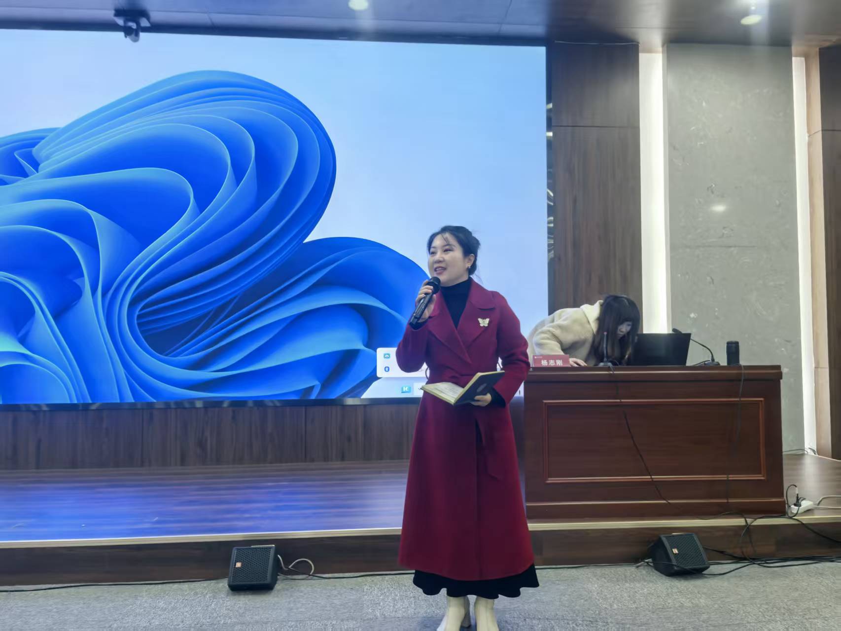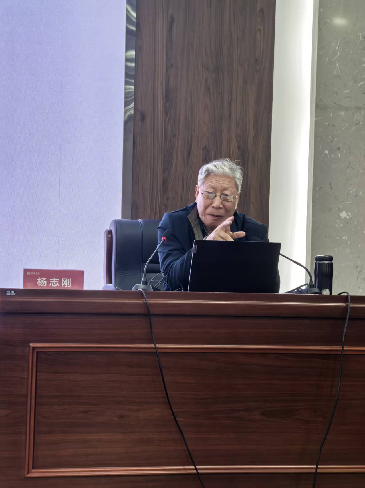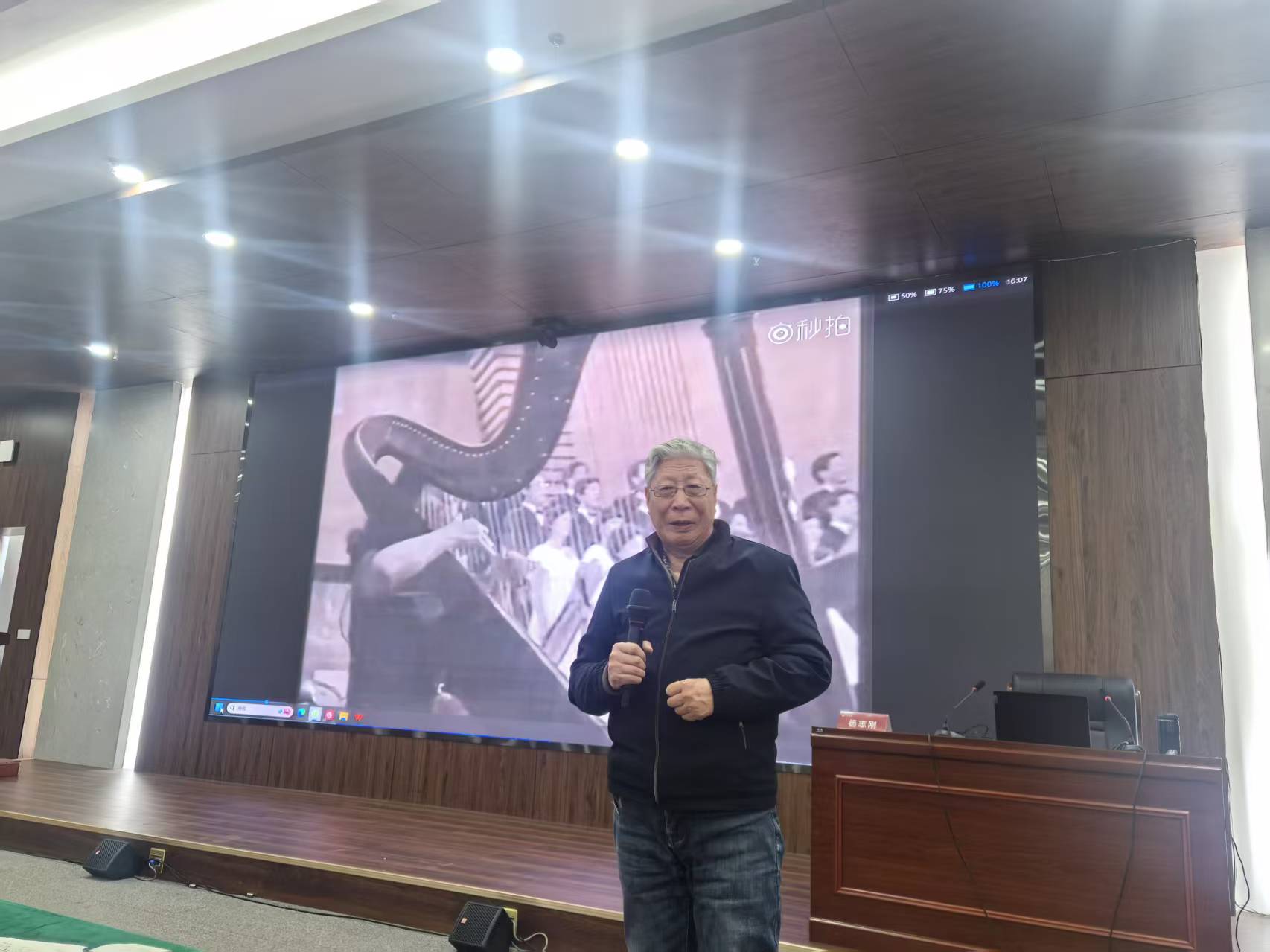 本次讲座由艺术系副主任薛佳瑜副教授主持,她在开场中简要介绍了《黄河大合唱》的经典价值与本次讲座的核心意义,明确了此次讲座旨在打通“作品理解”与“演唱实践”的链接,为师生搭建专业交流平台,同时热情欢迎杨志刚主席的到来。