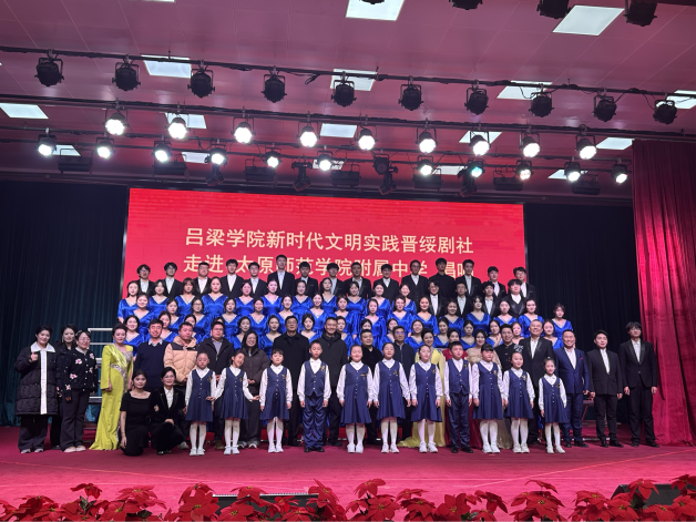 2025年12月18日,吕梁学院艺术系师生走进太原师范学院附属中学与进山中学,以“唱响红色经典,传承晋绥精神”为主题,为两校师生献上一场沉浸式红色音乐党课。尘封80 余年的《吕梁山大合唱》作为整场活动的灵魂主线,与《黄河大合唱》交相辉映,用穿越时空的旋律串联起抗战记忆,让红色经典在校园中深深扎根。